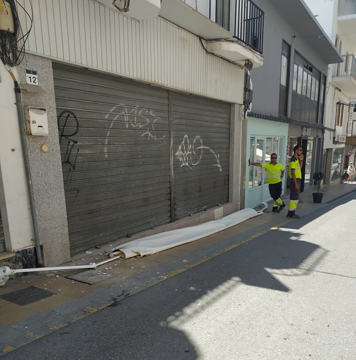 A consecuencia de ello, el toldo se ha desprendido y ha caído en la acera.
