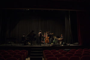 Joan Carles Marí amb l’Omar Alcaide Quartet (Eivissa, gener 2018). Foto: Ferran Nogués (Creative Commons)