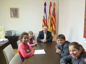 Però aquí no ha quedat l’entrevista, els quatre joves periodistes també han preguntat a l’Alcalde pel seu equip de futbol i per la seva feina i s’han interessat pel bastó de mando que hi ha al despatx. L’alcalde els n’ha explicat el significat, així com del llibre de visites que els hi ha deixat fullejar i que s’han mirat molt encuriosits. En acabar la visita els estudiants han rebut com a obsequi un llibre sobre el municipi que s’han fet signar abans de marxar.