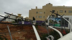 Una caseta de obra vuela por los aires y provoca tres heridos por el ‘cap de fibló’ en Sant Antoni