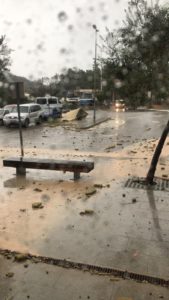 En este vídeo de Antonio Ripoll del hotel Tanit se puede comprobar cómo Cala Gració ha sido uno de los lugares más afectados. En él se pueden ver árboles arrancados de cuajo junto a la piscina y turistas desconcertados ante el paso del cap de flibó.