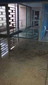 Las pistas deportivas de Can Coix han resultado muy afectadas. No solo los cristales de las pistas, sino que el techo del interior se ha desprendido en parte.
