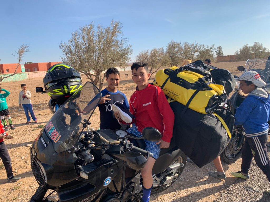 @Noudiari / Cristian García, Fernando Serrano y Carlos González volverán a África en sus motos para llevar zapatillas a niños y niñas del Sáhara Occidental.