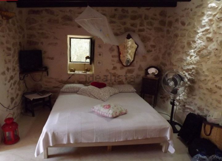 La casa principal cuenta con un dormitorio, cocina y baño, con garaje. Junto a la casa se encuentra la caravana o ‘minicasa’ como lo llama el anunciante, y en alguna parte del terreno hay algún tipo de construcción de madera entre árboles. La finca, que se encuentra en la Vénda des Pí des Catalá, cuenta con agua y electricidad, pero no calefacción.