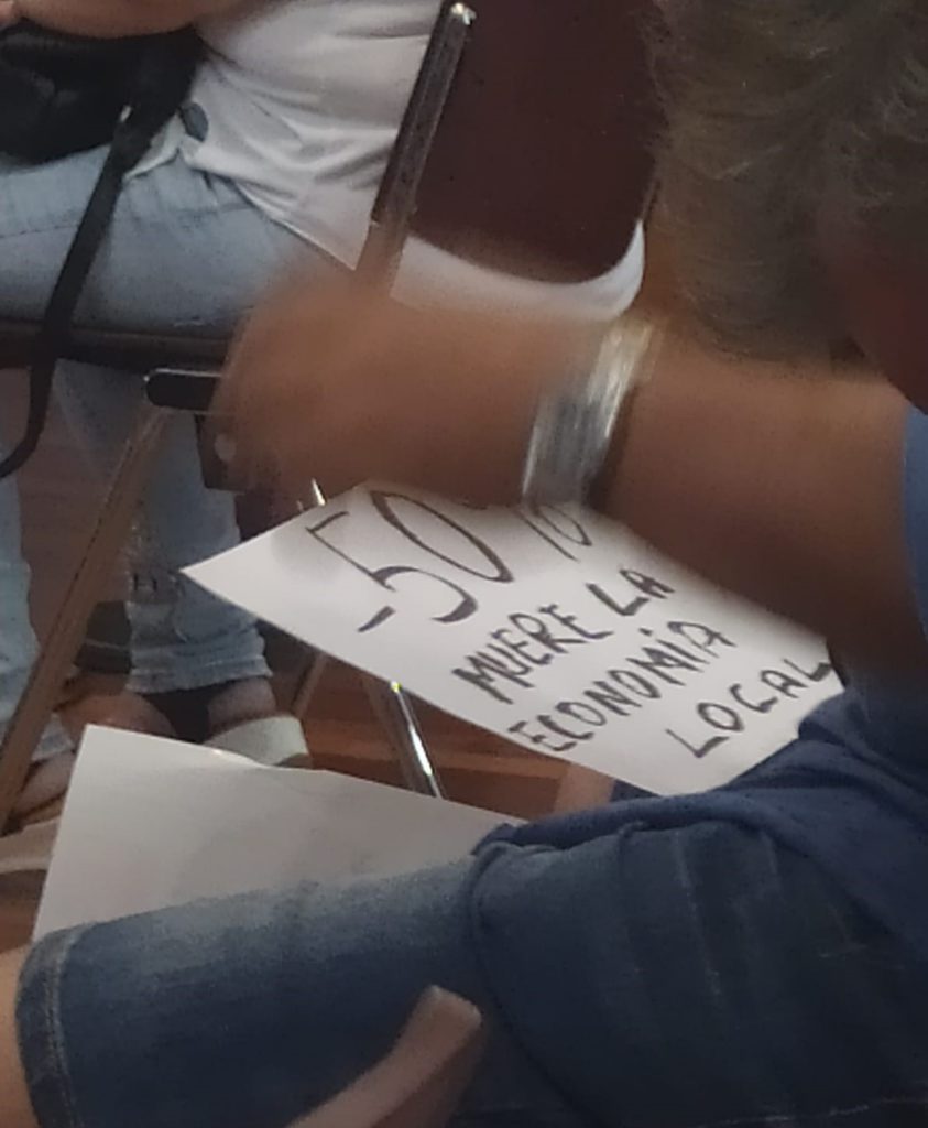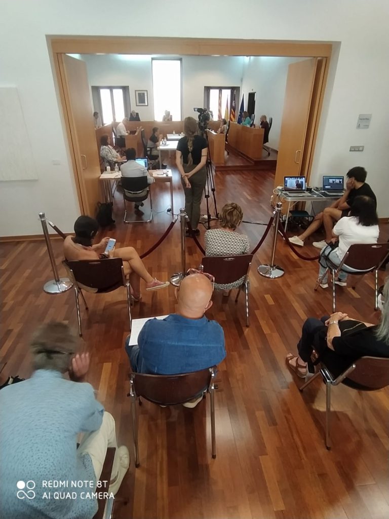 NouDiari / Un grupo de comerciantes de Ibiza ha asistido hoy al pleno del Ayuntamiento de Ibiza para mostrar su «indignación» y «preocupación» por el «abandondo municipal de los barrios» y por el impacto negativo que ha tenido la iniciativa de cierre de la ciudad al tráfico denominada Eivissa Oberta.