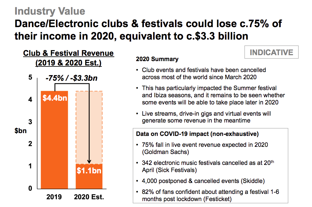 Calculan que los clubes y festivales perderán un 75 por ciento de sus ingresos este año, una cifra que evidentemente en Ibiza es mayor dada la estacionalidad de su oferta de ocio nocturno frente a otros lugares como Alemania, donde estos funcionan todo el año.