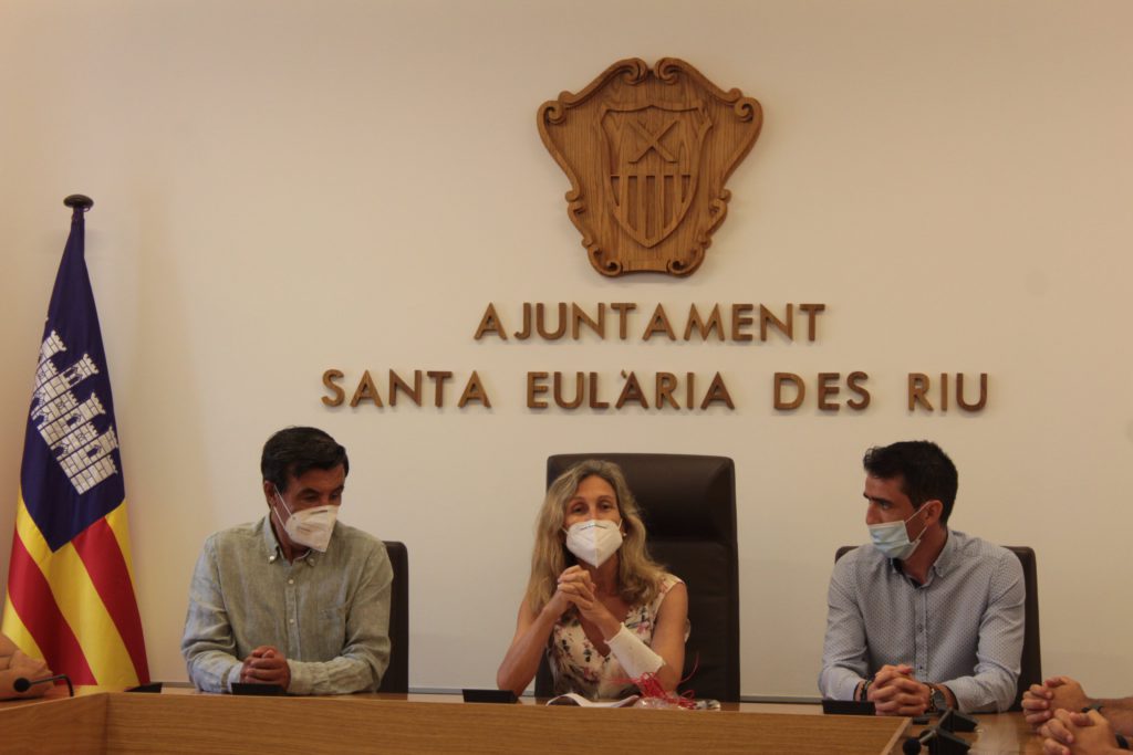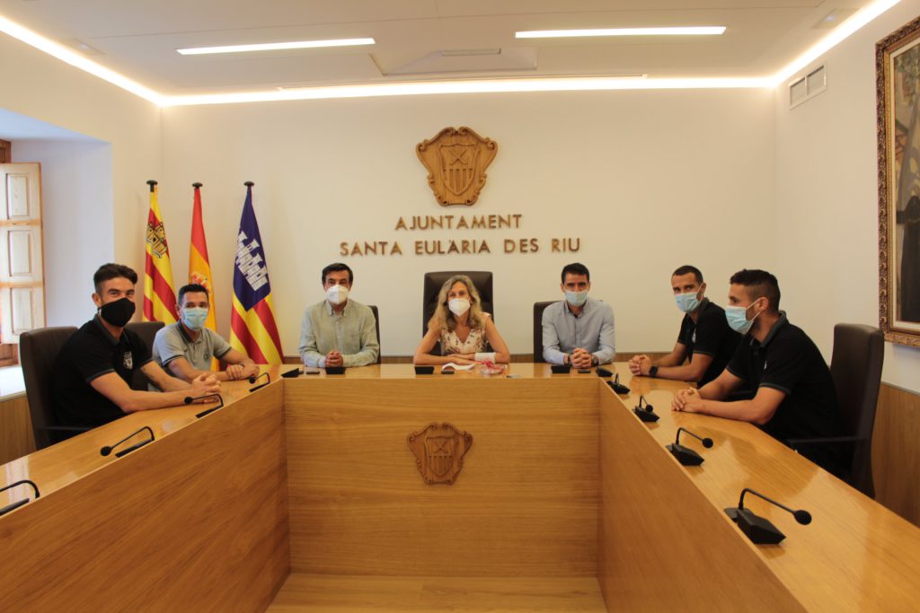 NouDiari / La alcaldesa de Santa Eulària, Carmen Ferrer, ha recibido esta mañana en el Consistorio a jugadores, cuerpo técnico y directiva de la Peña Deportiva de Santa Eulària, que el próximo 18 de julio inicia en Marbella el Play Off para ascender a Segunda División del fútbol español, «un hito histórico», destaca el Ayuntamiento.