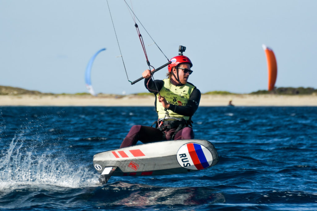El podio masculino, totalmente nuevo, sirve al ruso afincado en Tarifa para encaramarse a la primera plaza de la clasificación general del circuito Formula Kite Spain Series.