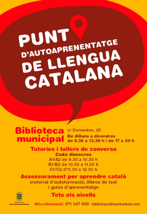 NouDiari / La Concejalía de Cultura y Educación del Ayuntamiento de Sant Antoni ha reactivado el Punt d’Autoprenentatge de Llengua Catalana (PAL) en la Biblioteca Municipal. El espacio habilitado cuenta con material didáctico e informático adaptado a diferentes niveles para facilitar el aprendizaje individualizado del catalán y se ajusta a las necesidades y ritmo de cada persona.