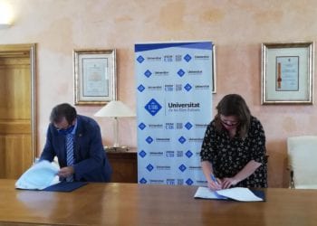 La consellera de Presidencia, Función Pública e Igualdad, Mercedes Garrido, y el rector de la Universitat de les Illes Balears, ...