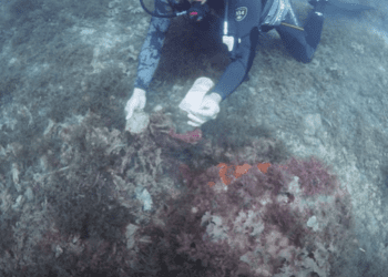 El emisario de la depuradora de Santa Eulària vierte una gran cantidad de residuos sólidos de todo tipo que se quedan depositados ...