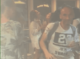 Bailando, sin mascarilla ni distancia de seguridad, y bebiendo en el interior del ferry de la compañía FRS que desde ...