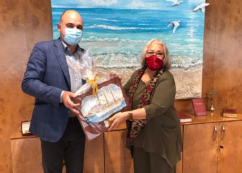 El president del Consell Insular d’Eivissa, Vicent Marí, juntament amb la consellera de Cultura, Educació i Patrimoni, Sara Ramón, i ...