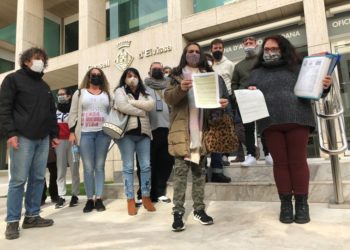 Una representación de los vecinos afectados por el inminente desalojo de los apartamentos Don Pepe de Sant Josep ha acudido ...