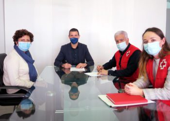 El alcalde de Sant Antoni de Portmany, Marcos Serra, acompañado por el segundo teniente de alcalde y concejal de Deportes, ...