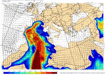 EFE/ La capa de polvo del Sáhara que ha cubierto este martes la península ibérica y las islas Baleares impulsada ...