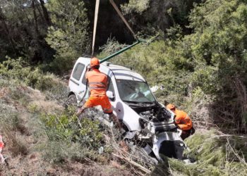 Operarios de la empresa Grúas Ibiza han recuperado esta mañana en el que era el último vehículo que quedaba en ...
