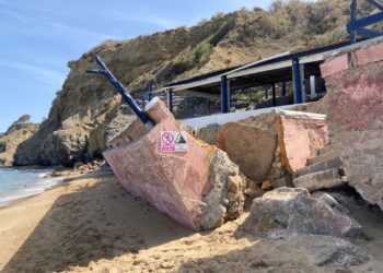El PSOE ha denunciado en un comunicado la peligrosidad del quiosco derrumbado en s'Aigua Blanca tras los temporales marzo y ...