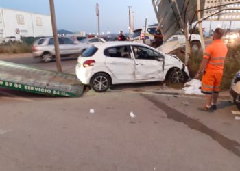 Huye de un control policial en Ibiza y estrella su coche contra una valla publicitaria