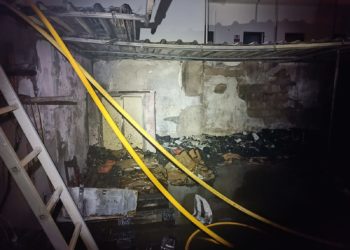 El local donde anoche se declaró un importante incendio en Santa Eulària, así como la parte trasera del mismo y ...