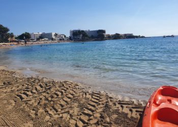 Esta mañana se han retirado las vallas y reabierto al público el tramo de la playa de es Canar cerrado ...
