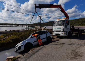 Y van... Otro coche se ha precipitado esta mañana al agua en uno de los canales de la saliera de ...