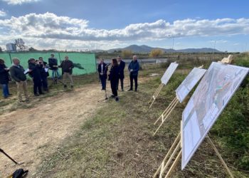 La presidenta del Govern, Francina Armengol; el conseller de Movilidad y Vivienda, Josep Marí, y el alcalde de Sant Josep, ...
