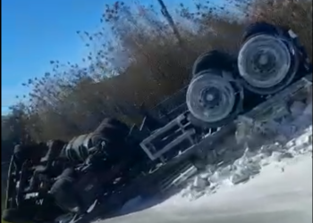 Un camión de gran peso ha quedado volcado esta mañana, sobre las 8 horas, en la zona de la rotonda ...