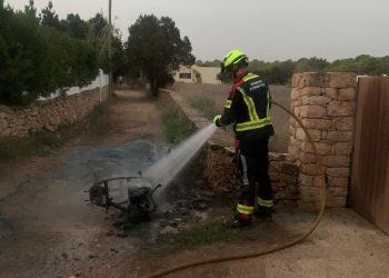 Los bomberos han tenido que ocuparse esta mañana de apagar una motocicleta que se encontraba en llamas en un camino ...