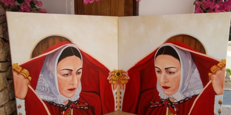 La artista explica que sus cuadros buscar ser «una representación de la cultura tradicional ibicenca, a través de diferentes retratos de balladors y artesanos ibicencos.