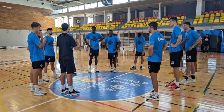 El nuevo Club Bàsquet Sant Antoni ya está en marcha. El conjunto ibicenco, que por cuarta temporada consecutiva competirá en la tercera categoría del baloncesto masculino nacional, ha empezadp los entrenamientos este sábado en el Pabellón de Sa Pedrera a las órdenes de David Barrio y su equipo técnico. Los pitiusos, que el curso pasado se quedaron a las puertas del ascenso a la nueva Primera FEB (antigua LEB Oro) aspiran de nuevo a luchar por subir a la antesala de la ACB, sueño que frustró el Morón en una final de infarto y salpicada de polémica.