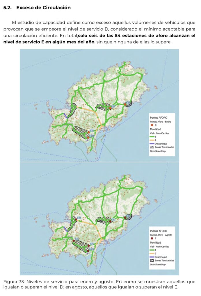 En todas estas áreas, siempre según el informe, los niveles de servicio bajan de la categoría D, el límite considerado aceptable por el Highway Capacity Manual. Sin embargo, el informe aclara que el resto de la red viaria mantiene un funcionamiento fluido incluso en temporada alta.