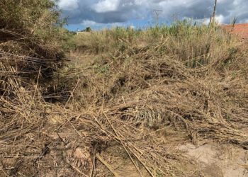 Vecinos de Santa Eulària han denunciado la acumulación de cañas en la parte central del canal del río de Santa...