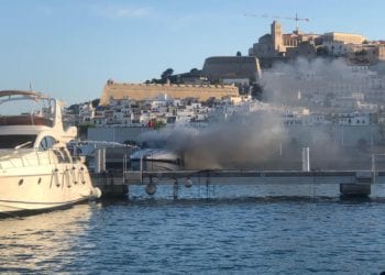 Arde y se hunde un yate de 14 metros de eslora en el puerto deportivo de Marina Ibiza