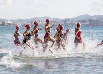 Alberto Parrilla y Susana Sevillano imponen su ritmo en el Acuatlón Platja d’en Bossa 2024