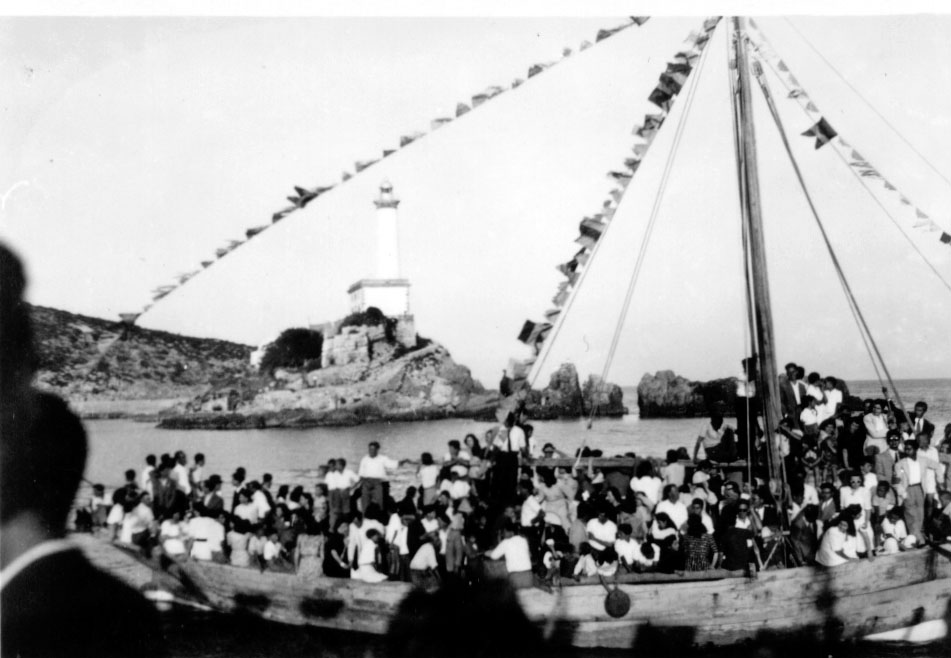 En mi sección «La Mirada», publiqué la pasada semana el artículo “Estrella de los mares”, hablando de la historia de la devoción en Ibiza a esa virgen y de cómo se fue consolidando la procesión marinera. Para los interesados, os recomiendo la lectura de aquel artículo. Hoy, os pongo unas fotos de Domingo Viñets de la procesión del año 1944, la primera que llegó hasta el faro del Botafoc.