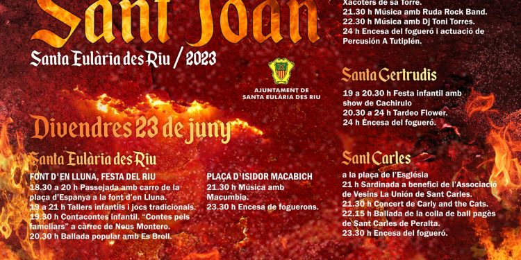 El Ayuntamiento de Santa Eulària ha preparado para esta Nit de Sant Joan numerosas actividades repartidas por el municipio que incluyen los tradicionales ‘foguerons’, actuaciones musicales, así como talleres infantiles pero también un servicios de ‘carro taxi’, juegos de agua o un espectáculo de luces led.