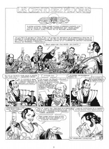 El habitual denso trazo de tinta de Magnus se sublima aquí a un estilo con reminiscencias a grabados del siglo XIX, y aunque si bien es cierto que las escenas sexuales (resultaría incongruente calificarlas de “eróticas”) son anatómicamente perfectas y explícitas, no es menos cierto que los detalles de la vestimenta, los accesorios, la arquitectura, los paisajes, y en definitiva, el decorado en el que se desarrolla la acción, reciben el mismo trato exquisito por parte del dibujante, dando en conjunto un resultado delicioso que eleva la pornografía ilustrada a la categoría de Arte con mayúsculas, generando un tebeo muy del gusto  del mediático presentador televisivo D. Roger Riera, quién llevaba ya largo tiempo insistiendo en ver lo que él califica de “redondeces” en esta sección. Pues bien, aquí las tienen; espero que tanto él como ustedes mismos disfruten de las 110 píldoras, pero recuerden, siempre con moderación, nunca una más de una, y una cada luna…o no.