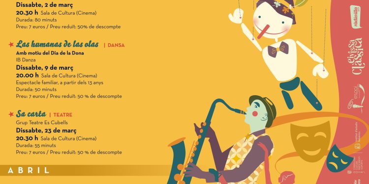 El mes de marzo comenzará con la obra de teatro ‘Dones de la sal’ a cargo de la compañía de Pedro Cañestro, que se representará el día 2 a las 20.30 horas también en la Sala de Cultura (Cinema) con motivo de la celebración del Día de Baleares.