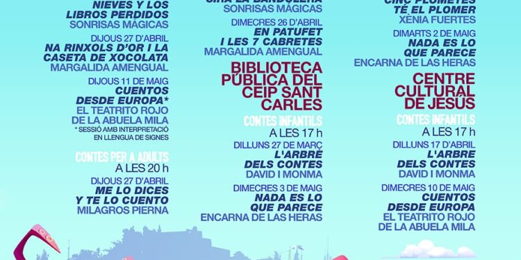La primera de las citas, como decimos, es este mismo jueves en la sede de la Biblioteca Municipal, situada en los bajos del número 9 de la calle Joan Tur Tur. Xènia Fuertes presentará su propuesta ‘El viatge d’en Simba’. Al día siguiente la acción se traslada a la biblioteca del colegio Santa Gertrudis con ‘Sira la bandolera’ a cargo de Sonrisas Mágicas. A partir de aquí, y hasta el 10 de mayo, participarán en los Cuentacuentos Margalida Amengual, David i Monma, Encarna de las Heras, El Teatrito Rojo de la Abuela Mila y Milagros Pierna.