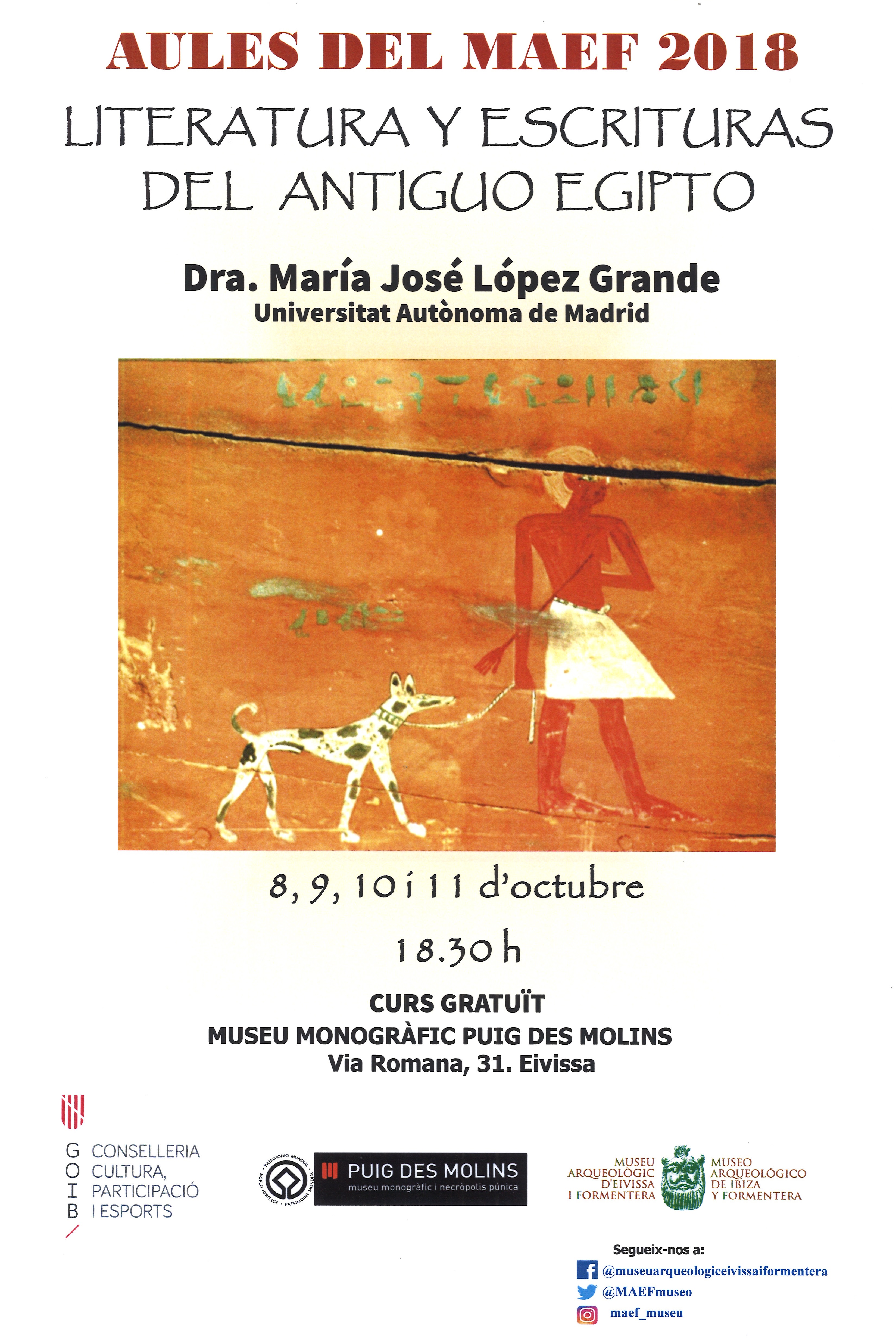 Día 8 de octubre: Textos egipcios y escrituras egipcias: los géneros literarios escritos en lengua egipcia. Escribas y sacerdotes lectores: artífices de las escrituras y de la lectura. Los apoyos de los textos: escrituras sobre los muros; escritos en las estelas; relatos en los papiros; narraciones sobre madera y cerámica. Escritura y magia en el antiguo Egipto.