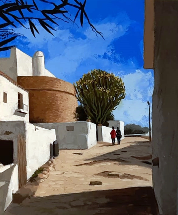 En cuanto al cuarto premio, este también toma como referencia la torre de la iglesia, aunque desde otra perspectiva. En este caso, Raúl Moya introduce el protagonismo de los marrones de la piedra, si bien con la contraposición del blanco de los edificios encalados y del azul del cielo.