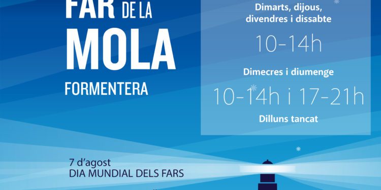 El Consell de Formentera, a través del área de Cultura, informa que el 7 de agosto coincidiendo con el Día Mundial de los Faros la entrada al Faro de la Mola será gratuita. En verano y hasta el 31 de octubre el horario del faro es de martes a domingo de 10 a 14h y las tardes de miércoles y domingo, de 17 a 21h. Los lunes permanece cerrado.
