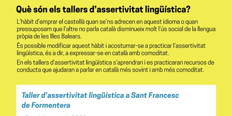 La Direcció General de Política Lingüística del Govern de les Illes Balears i l’Obra Cultural Balear de Formentera, en col·laboració amb el Servei d’Assessorament Lingüístic del Consell de Formentera, organitzen, en el marc de la campanya «Mou la llengua», un taller sobre assertivitat lingüística el pròxim 4 de maig a Formentera. La jornada se celebrarà de 17 a 20 hores a la sala d’actes del Consell.