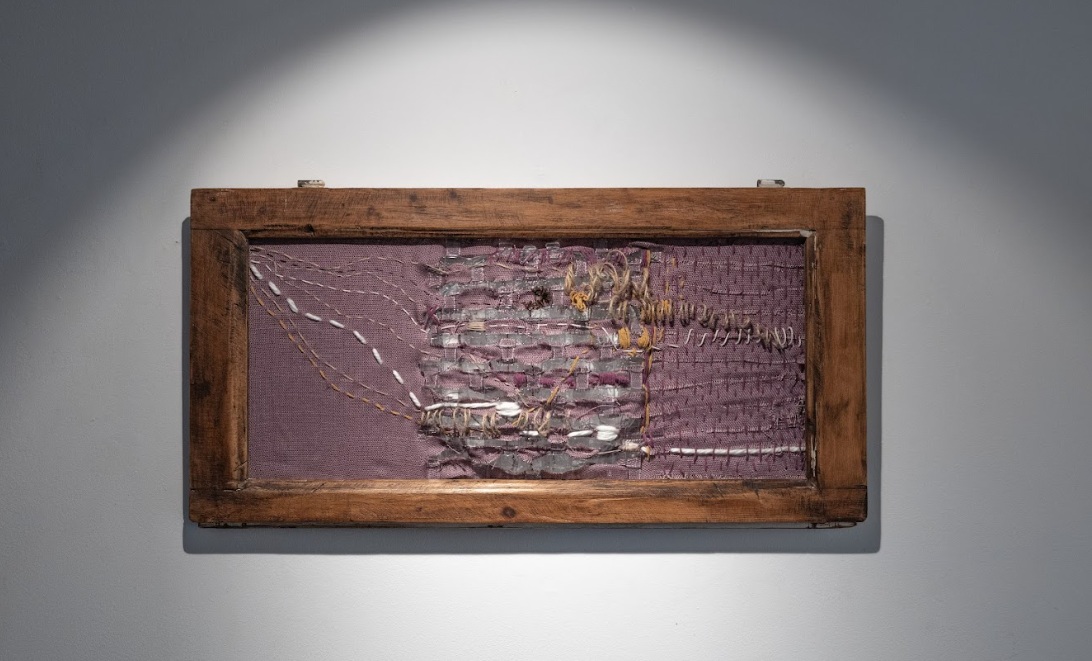 Como señala la artista, en las piezas de la muestra encontramos mezclas abstractas de cerámicas, vidrios y telas. El material habla por sí mismo: “Mi vínculo con las lanas y los hilos es que mis dos abuelas, materna y paterna, eran costureras, tejedoras, como antiguamente hacían muchas mujeres, que cosían para otras personas, que tiene que ver mucho también con los cuidados. En mi casa siempre hubo muchos costureros antiguos con un montón de hilos, lanas, y cosas que yo ya hace muchos años empecé a ordenar y a utilizar”.
