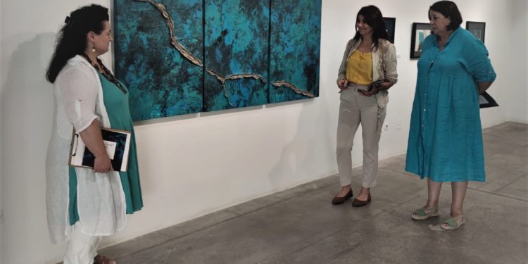La consellera de Cultura, Educació i Patrimoni del Consell Insular d’Eivissa, Sara Ramon, juntament amb l’artista Josefina Torres, han presentat aquest dimarts la nova mostra que es podrà visitar a Sa Nostra Sala des d’aquest dimecres 21 de setembre i fins al 14 d’octubre i que, sota el títol, ‘Llaurant l’eteri’, recull 33 obres de Torres, qui fou la guanyadora del Premi Vuit d’Agost de Pintura 2021, ex aequo amb Carmen Liberal Siso Riera, amb l’obra La mar trencada.