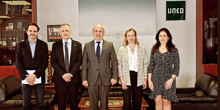 El rector de la UNED, Ricardo Mairal, y el rector de la UIB, Jaume Carot Giner, han sido los encargados de rubricar el acuerdo en un acto que también ha contado con la presencia de Judit Vega, directora de UNED Illes Balears; Miguel Miguéns, vicerrector de Planificación, y Natalia Urigüen, vicerrectora adjunta de Comunicación Institucional.