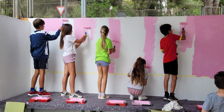 • Aída Miró, pintora, que conjuntament amb tot l’alumnat de primària, està elaborant un gran mural que representa els valors de l’escola. El disseny, creat per la pintora, està inspirat en l’artista Keith Haring de Nova York i ocupa una paret del pati de 3m d’alt x 32m de llargada. Els alumnes estan passant pel mural des del dilluns i de manera molt organitzada, pintant en grups de 10, van donant forma a l’obra, que estarà finalitzada el divendres per a la festa de clausura de les Jornades.