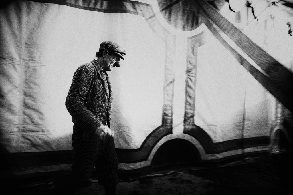 Por un lado, la serie Circ se aproxima al Circo Raluy desde una mirada documental y próxima, en la que ahonda en el circo no tanto como espectáculo sino como forma de vida. Esta serie forma parte del proyecto expositivo La Fugacitat de la Mirada y en ella el circo se visualiza como un territorio móvil, hecho de espera, trabajo y vínculos; un patrimonio vivo que viaja con sus carromatos, su memoria y su estética de época.