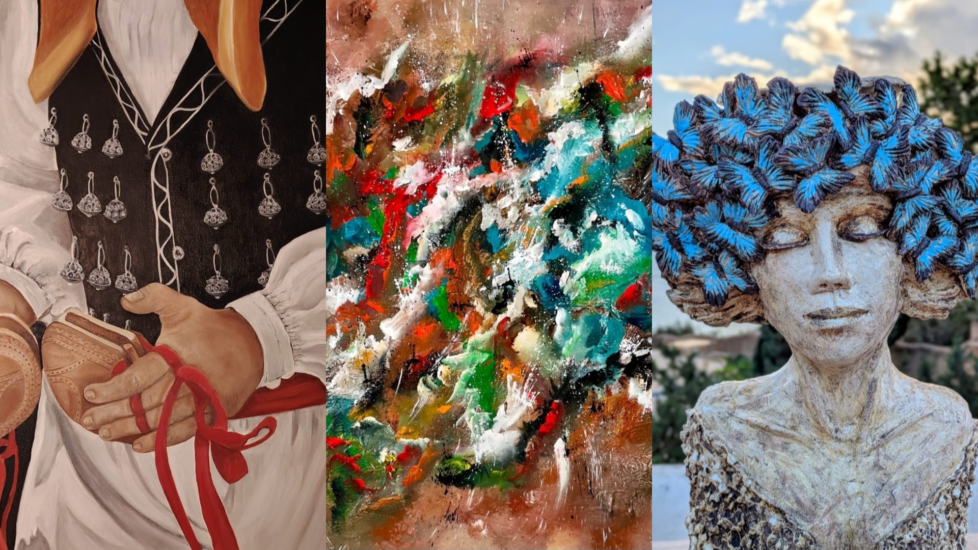 Las obras expuestas —que abarcan principalmente pintura y escultura— se mueven entre la figuración y la abstracción. Todas comparten un mismo hilo conductor: la representación de paisajes, tradiciones y escenas reconocibles de Ibiza.